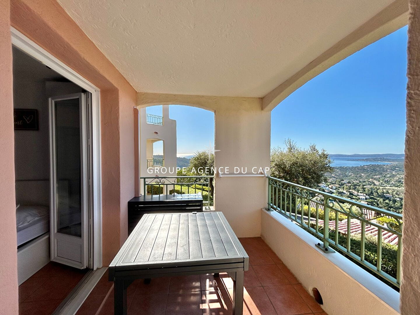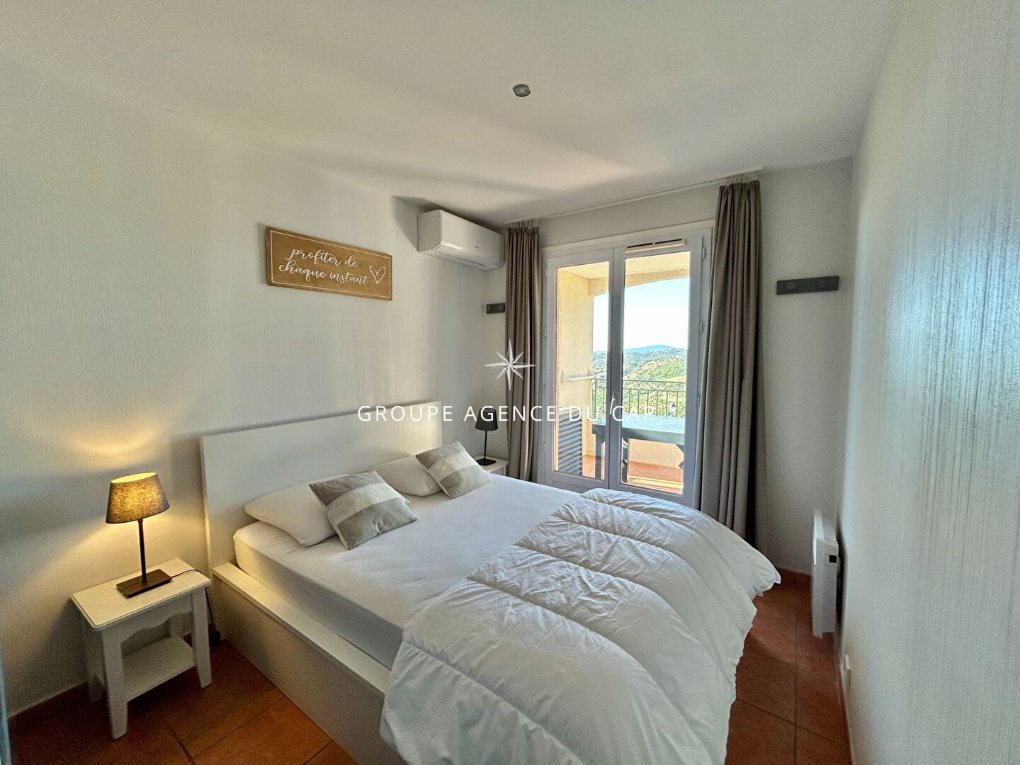 La terrasse d’environ 6 m², exposée plein sud, invite à la détente et permet de profiter pleinement de la vue mer. L’appartement est également équipé de la climatisation réversible pour un confort optimal en toute saison.