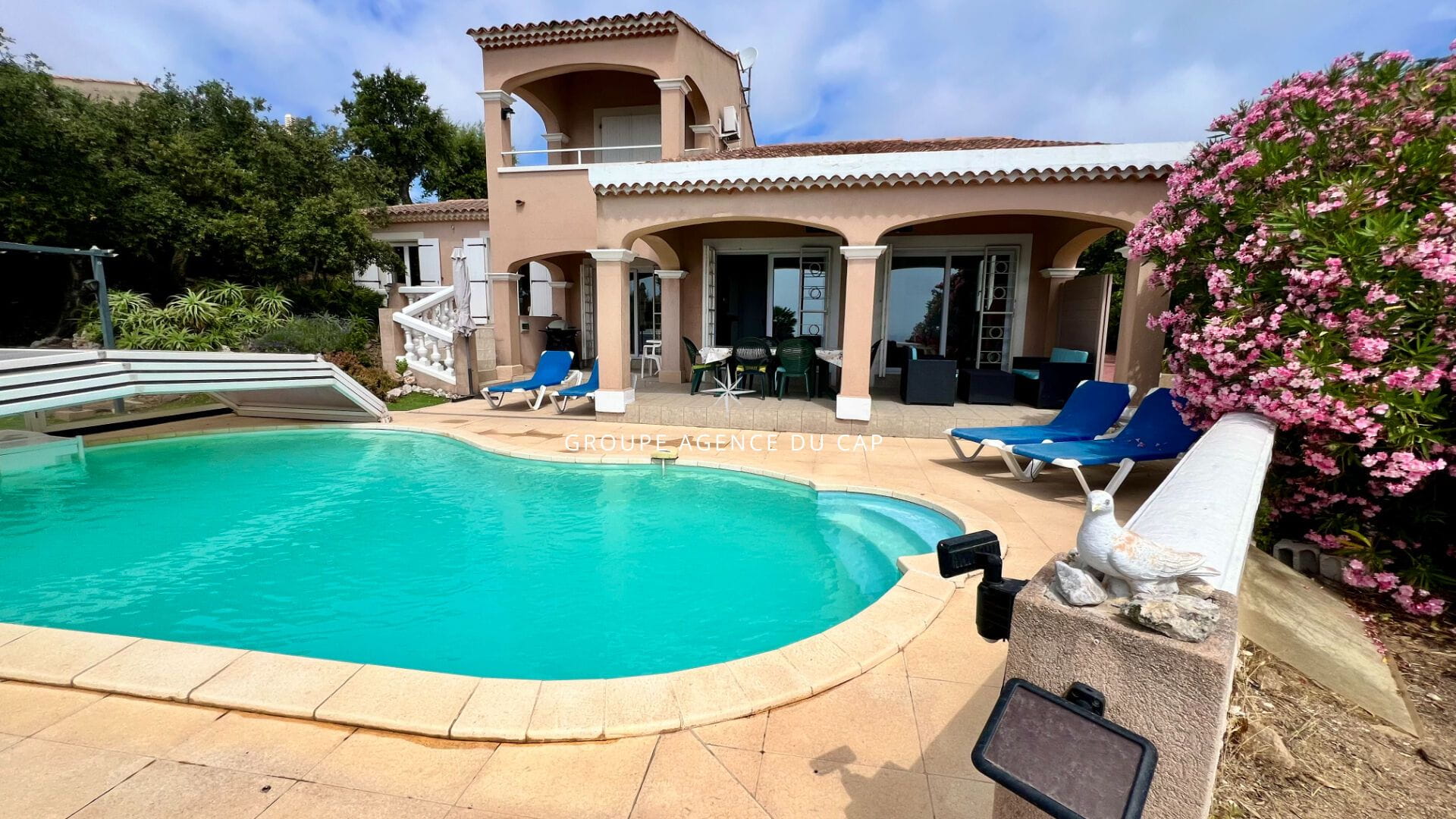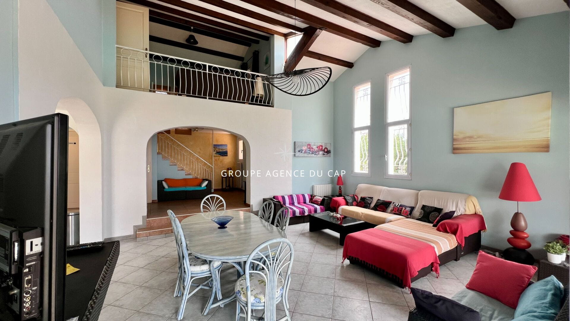 Jolie villa d’environ 140m2 sur un beau terrain de 1300m2 offrant une vue panoramique sur la mer.