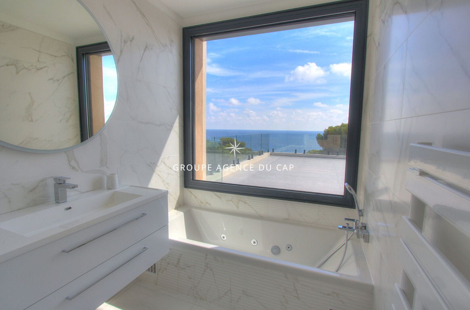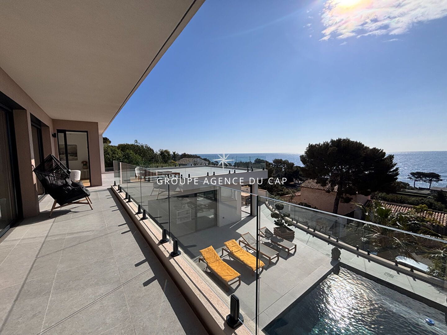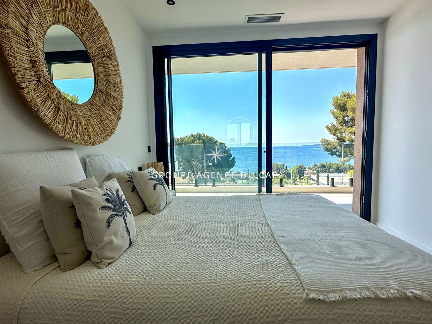 A pied de la mer et du village de SAN PEIRE, superbe villa contemporaine neuve avec VUE MER PANORAMIQUE sur la baie de SAINT-TROPEZ. Elle propose de généreux espaces de vie prolongés de terrasses face à la mer et piscine à débordement, chambre de maître, cave à vins, buanderie, cuisine design. A l’étage, on trouve 5 chambres en suite ouvertes sur 96m² de terrasse, et un bureau. Salle de sport, de cinéma, garage double, parkings 3 voitures complète cette splendide propriété. Les niveaux sont desservis par un ascenseur et toutes les pièces ont vue mer. Terrain superbement arboré, terrain de boules (évidemment !!). Une propriété d’exception qui vous permet de poser ses valises et de profiter tout simplement.