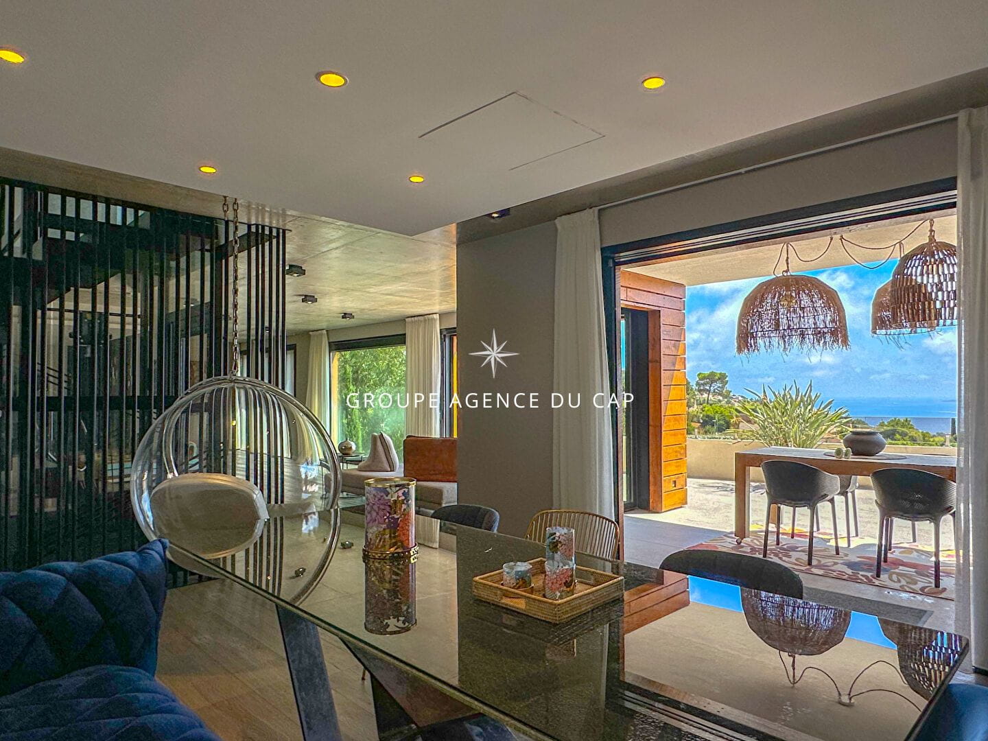 Dans un environnement calme et préservé, cette villa contemporaine d’environ 325 m² séduit par son architecture soignée, ses volumes généreux et sa vue mer imprenable depuis chaque pièce. Édifiée sur un terrain de près de 5 000 m², elle offre une pièce de vie de plus de 100 m², prolongée par une grande terrasse avec piscine à débordement face à la Méditerranée.