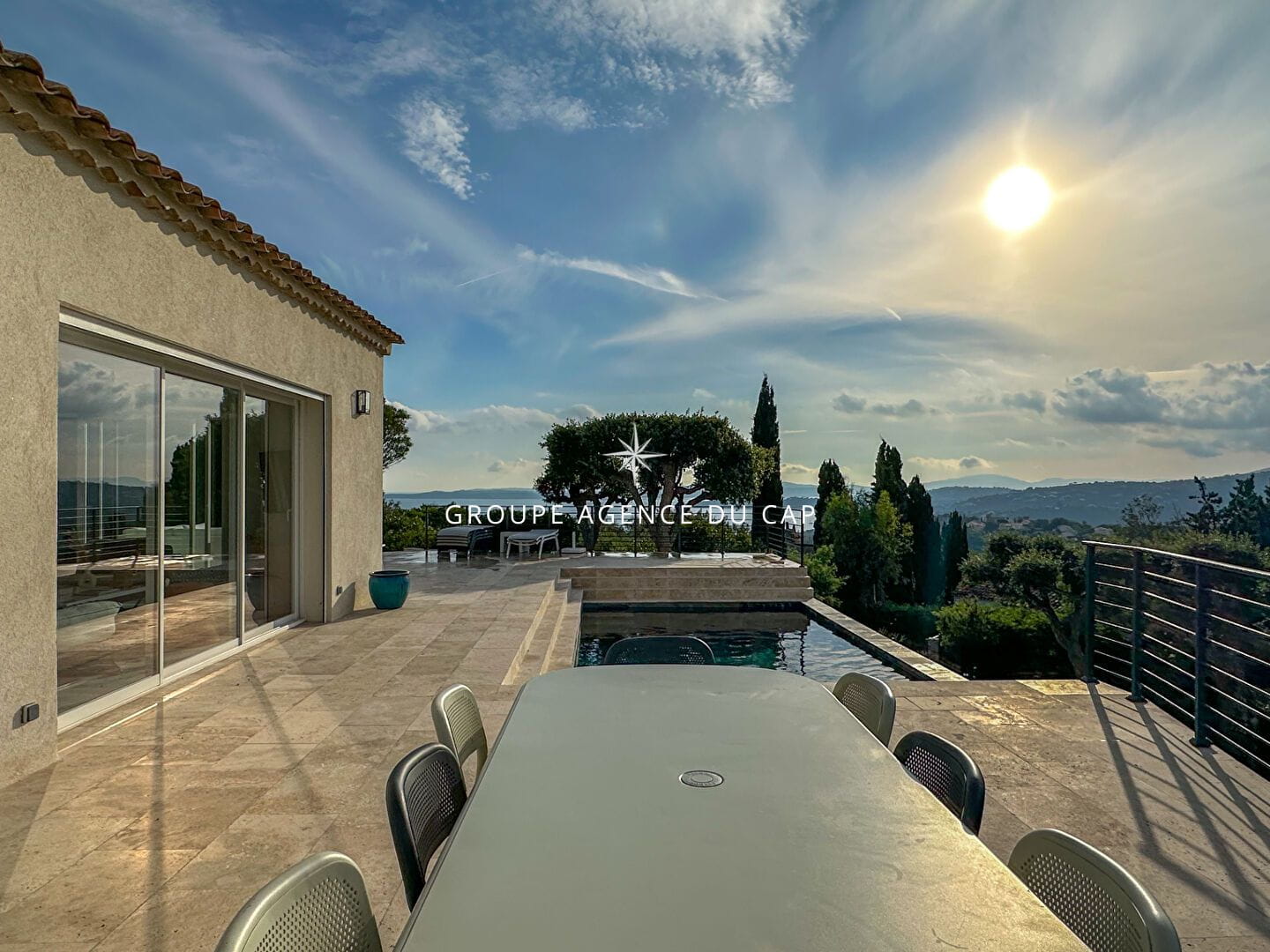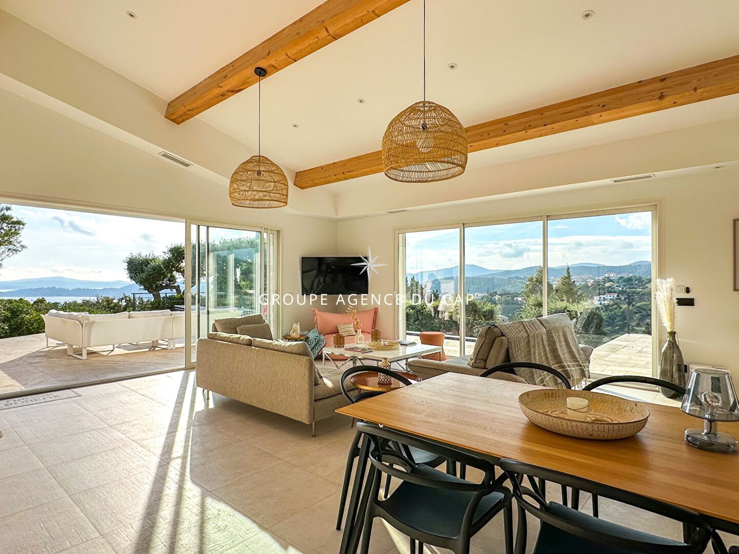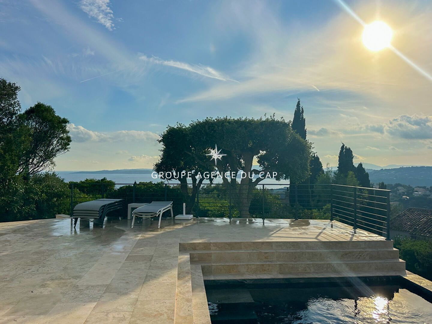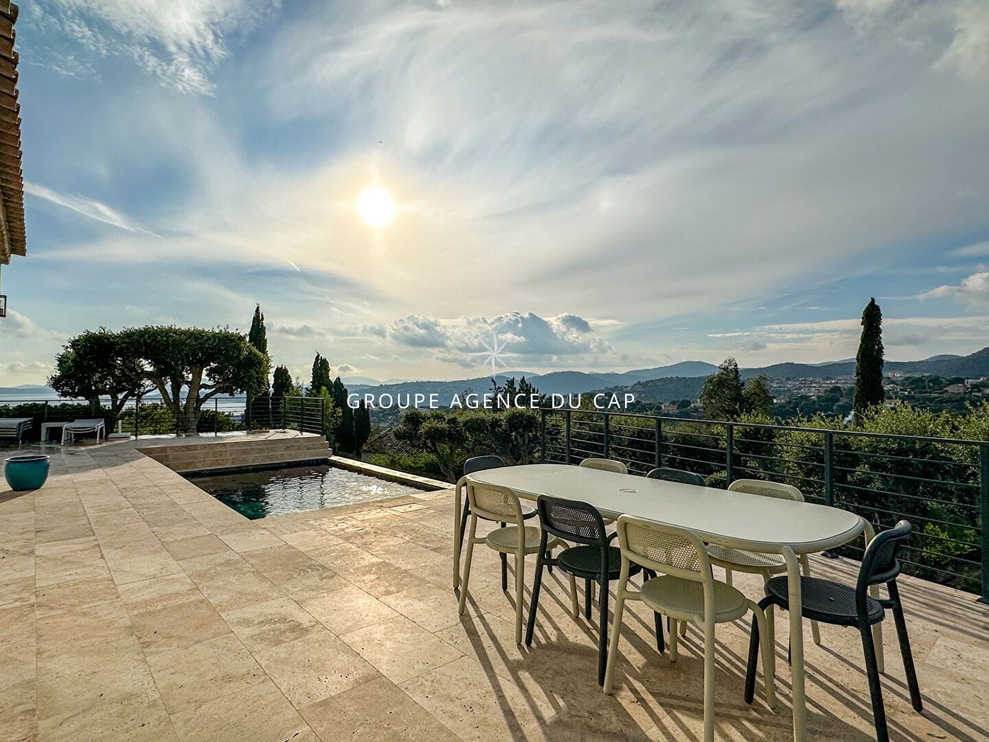A l’extérieur, un magnifique terrain paysager accueille une grande terrasse au niveau des espaces de vie et de la piscine, offrant un cadre idéal pour se détendre ou recevoir, tout en profitant d’une vue spectaculaire et dégagée sur le Golfe de Saint-Tropez.