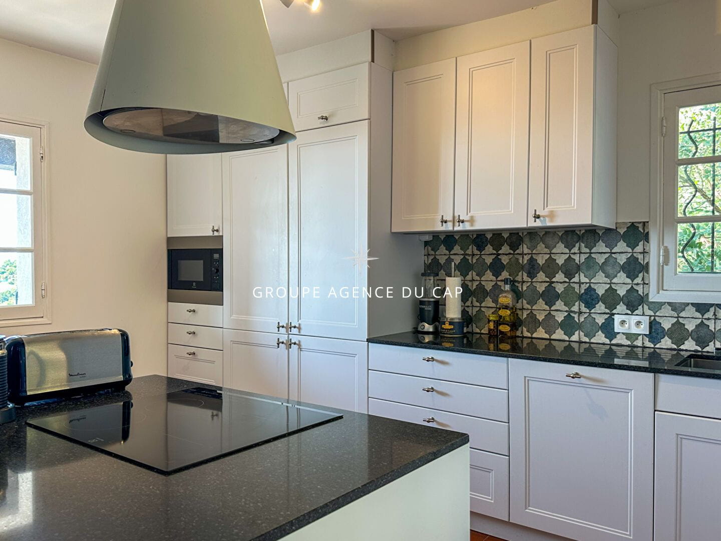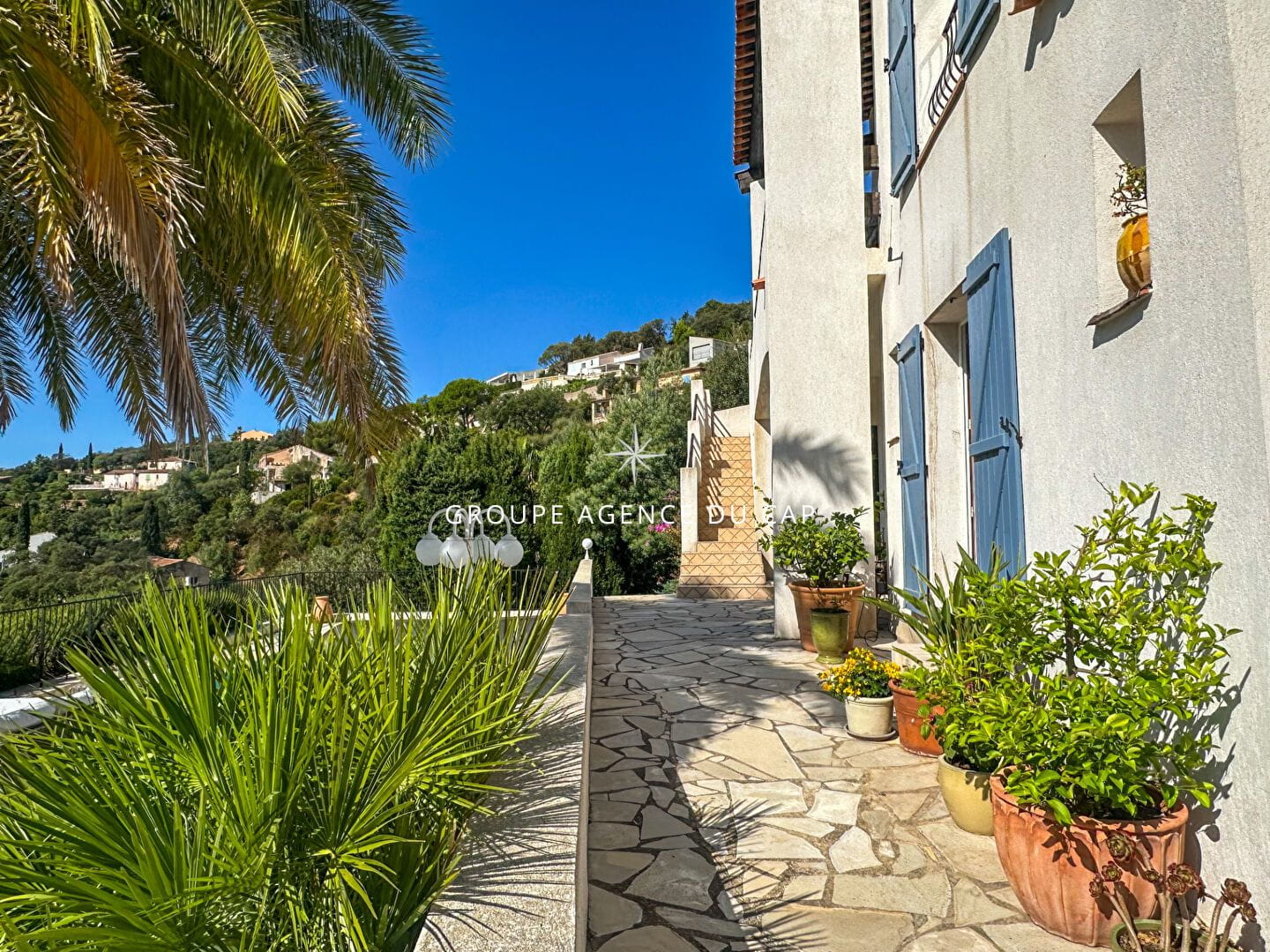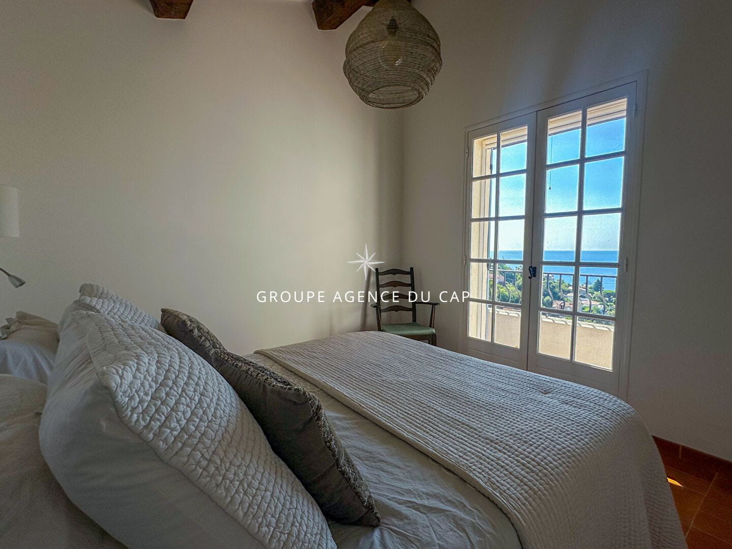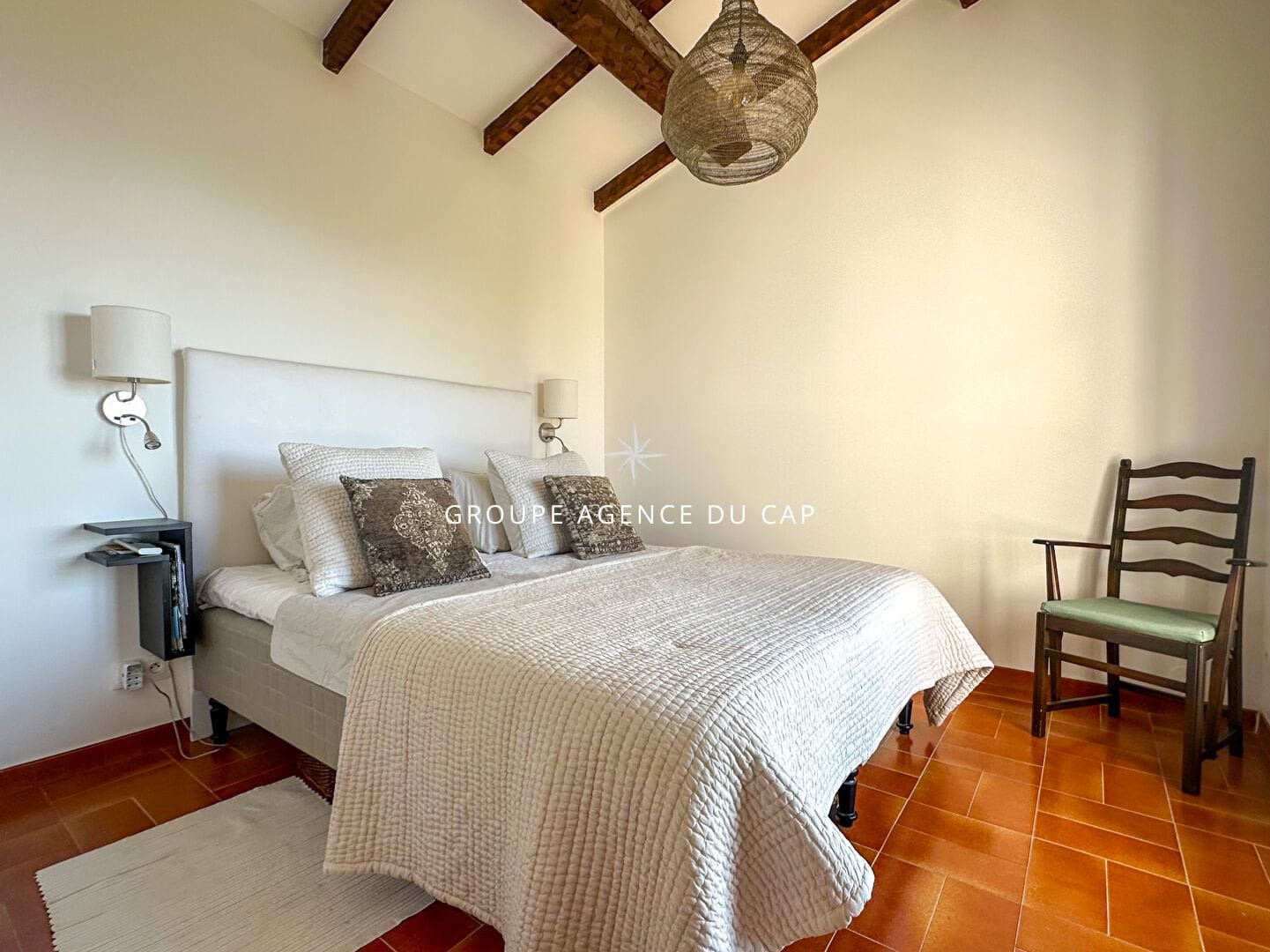 Cette charmante villa provençale, entièrement rénovée et climatisée, bénéficie d’une exposition plein sud et d’une magnifique vue mer. Le niveau principal offre un vaste séjour ouvrant sur une terrasse, une cuisine équipée, deux chambres, deux salles d’eau avec toilettes ainsi qu’une chambre en mezzanine donnant accès à une agréable tropézienne. Le niveau inférieur accueille un appartement indépendant comprenant un salon avec cuisine américaine aménagée, une chambre principale, une chambre cabine, des rangements et une salle d’eau avec toilettes. L’extérieur séduit par un terrain paysager sans vis-à-vis, une piscine au chlore de 4×8 mètres et des emplacements de stationnement pour voitures. Une propriété pleine de charme, idéale pour profiter de la Côte d’Azur en famille ou entre amis.