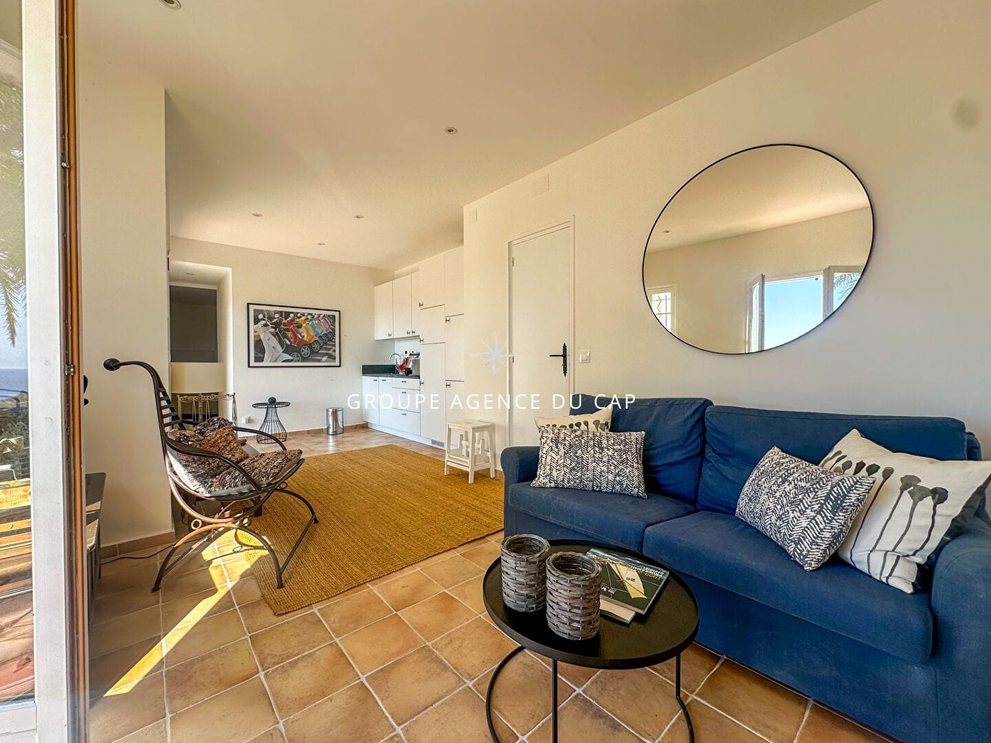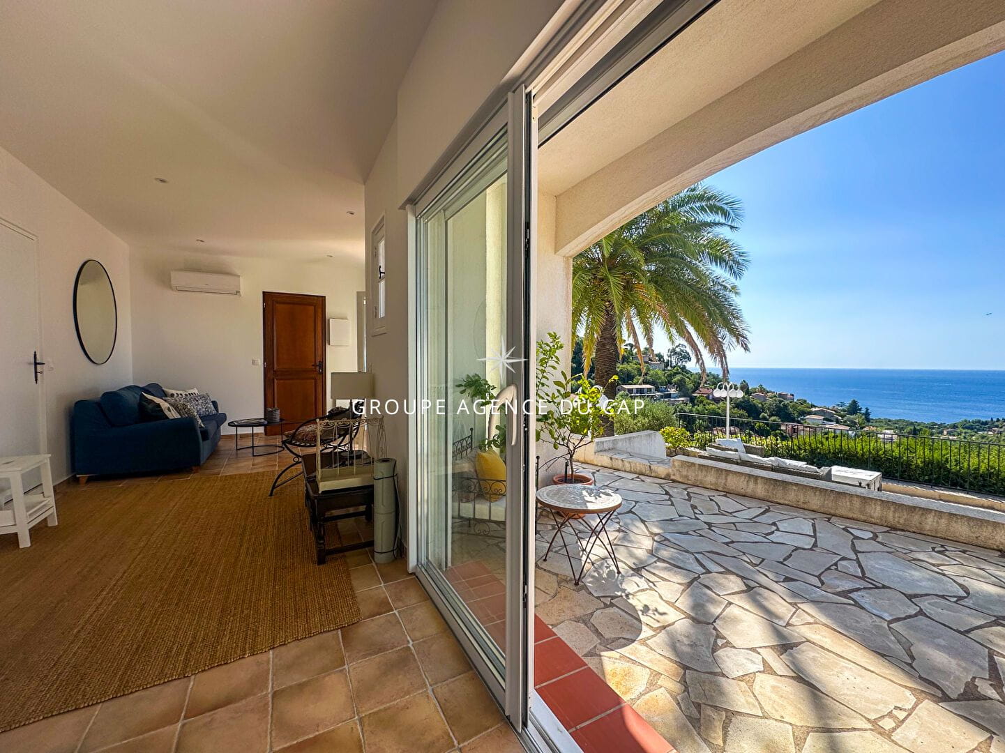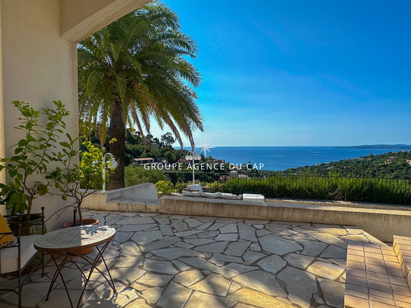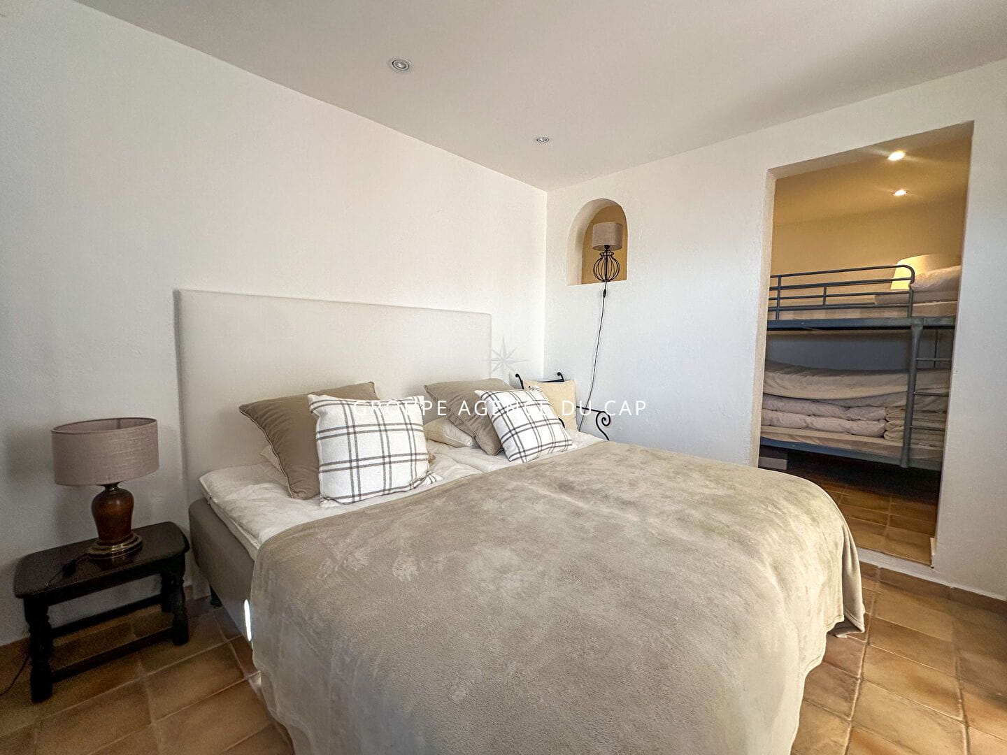 Cette charmante villa provençale, entièrement rénovée et climatisée, bénéficie d’une exposition plein sud et d’une magnifique vue mer. Le niveau principal offre un vaste séjour ouvrant sur une terrasse, une cuisine équipée, deux chambres, deux salles d’eau avec toilettes ainsi qu’une chambre en mezzanine donnant accès à une agréable tropézienne. Le niveau inférieur accueille un appartement indépendant comprenant un salon avec cuisine américaine aménagée, une chambre principale, une chambre cabine, des rangements et une salle d’eau avec toilettes. L’extérieur séduit par un terrain paysager sans vis-à-vis, une piscine au chlore de 4×8 mètres et des emplacements de stationnement pour voitures. Une propriété pleine de charme, idéale pour profiter de la Côte d’Azur en famille ou entre amis.