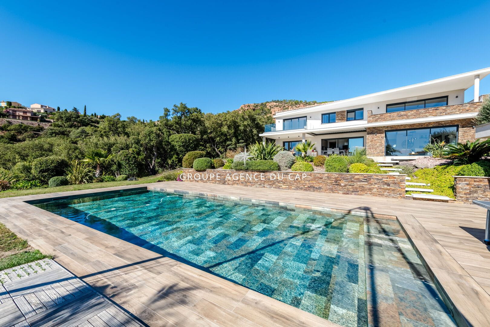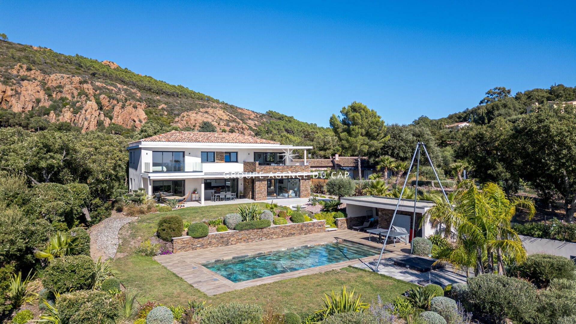 Superbe villa contemporaine avec très belle vue mer sur la baie d’Agay, dans un environnement calme et sécurisé, aux pieds du massif de l’Estérel.