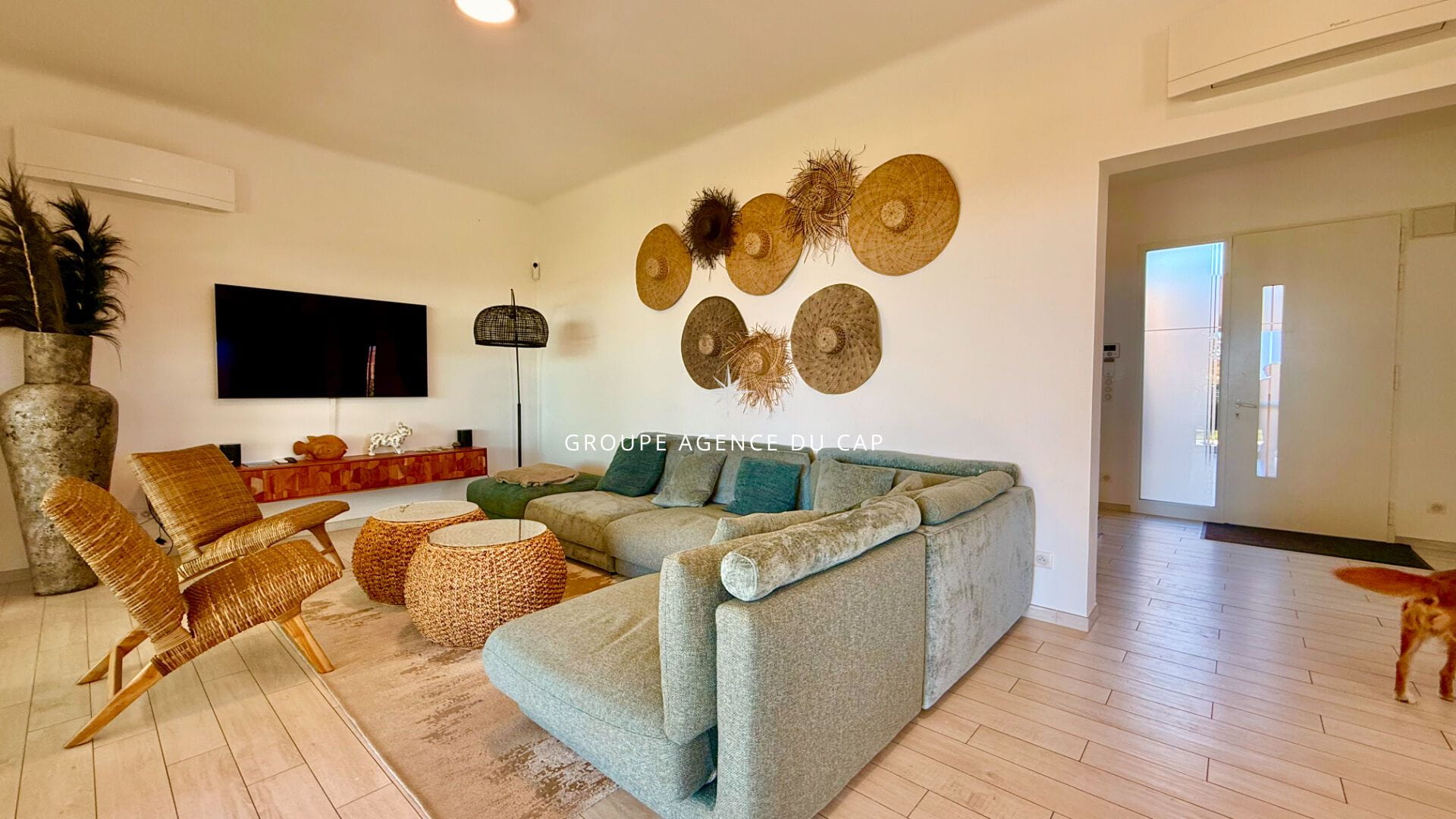 À l’horizon, la Méditerranée scintille. Juste en face, la baie de Saint-Tropez. C’est dans ce décor unique que se niche cette villa contemporaine, véritable écrin de quiétude, offrant un accès direct à la plage et une vue panoramique à couper le souffle.