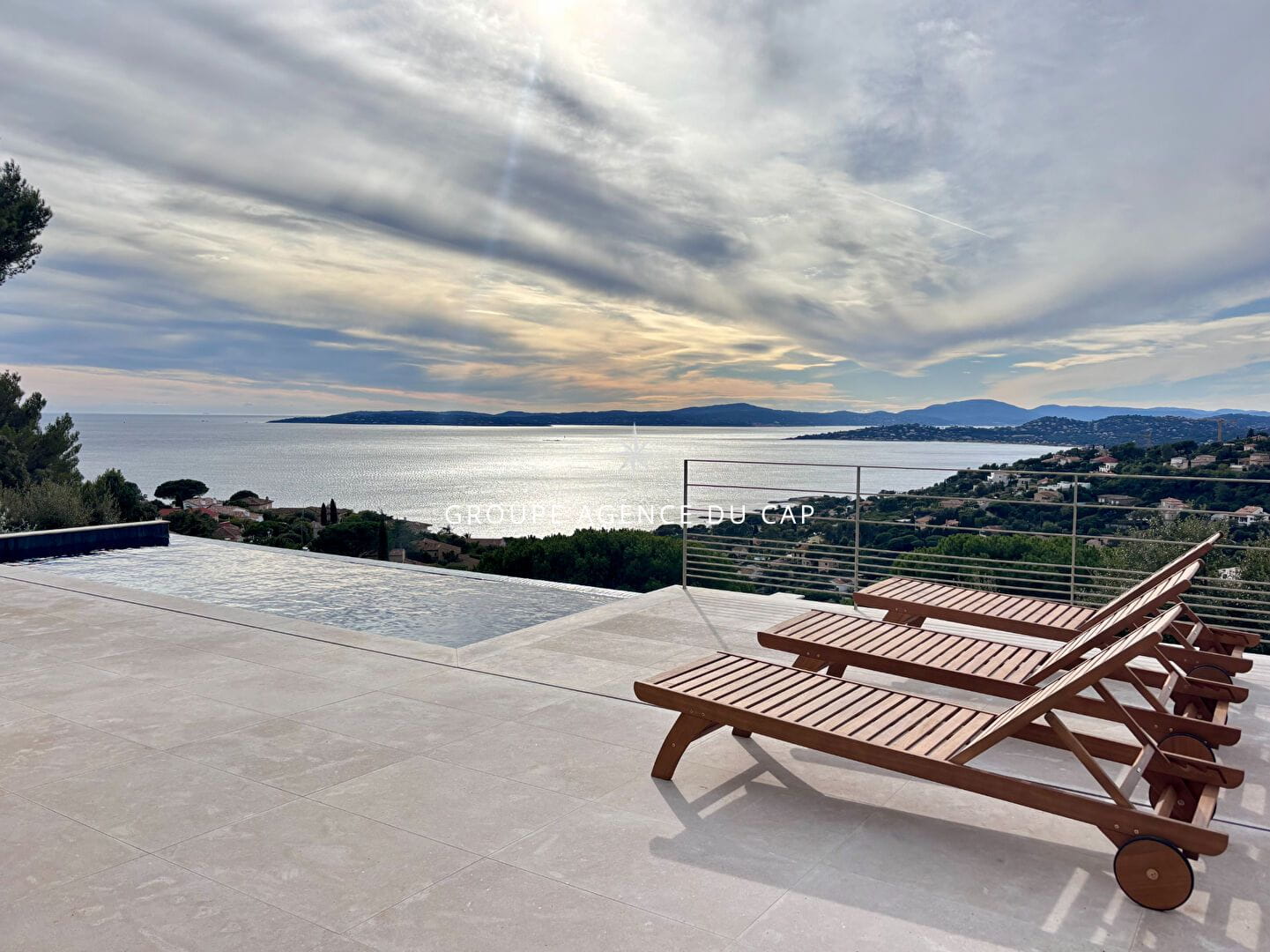 Vous pourrez profiter de généreuses terrasses avec une vue mer panoramique où vous prélasser autour de la piscine.