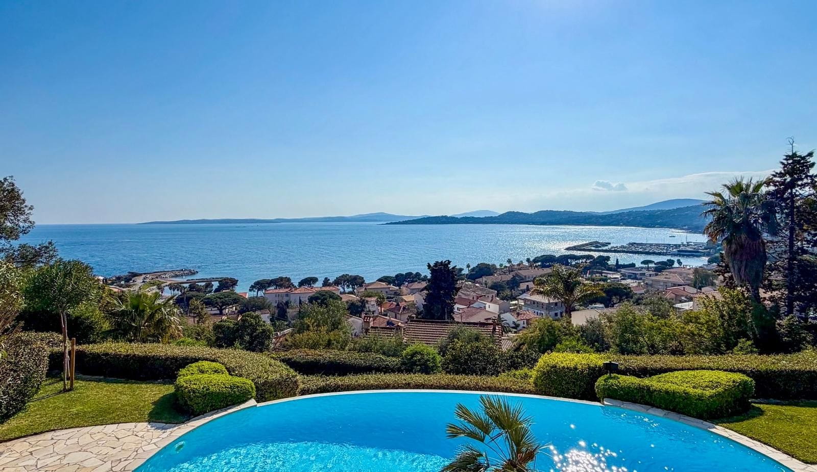 VILLA VUE MER PANORAMIQUE SUR LE GOLFE DE SAINT TROPEZ PROPRIETE D EXCEPTION PISCINE DOUBLE GARAGE A PIED DU CENTRE ET DES PLAGES DES ISSAMBRES